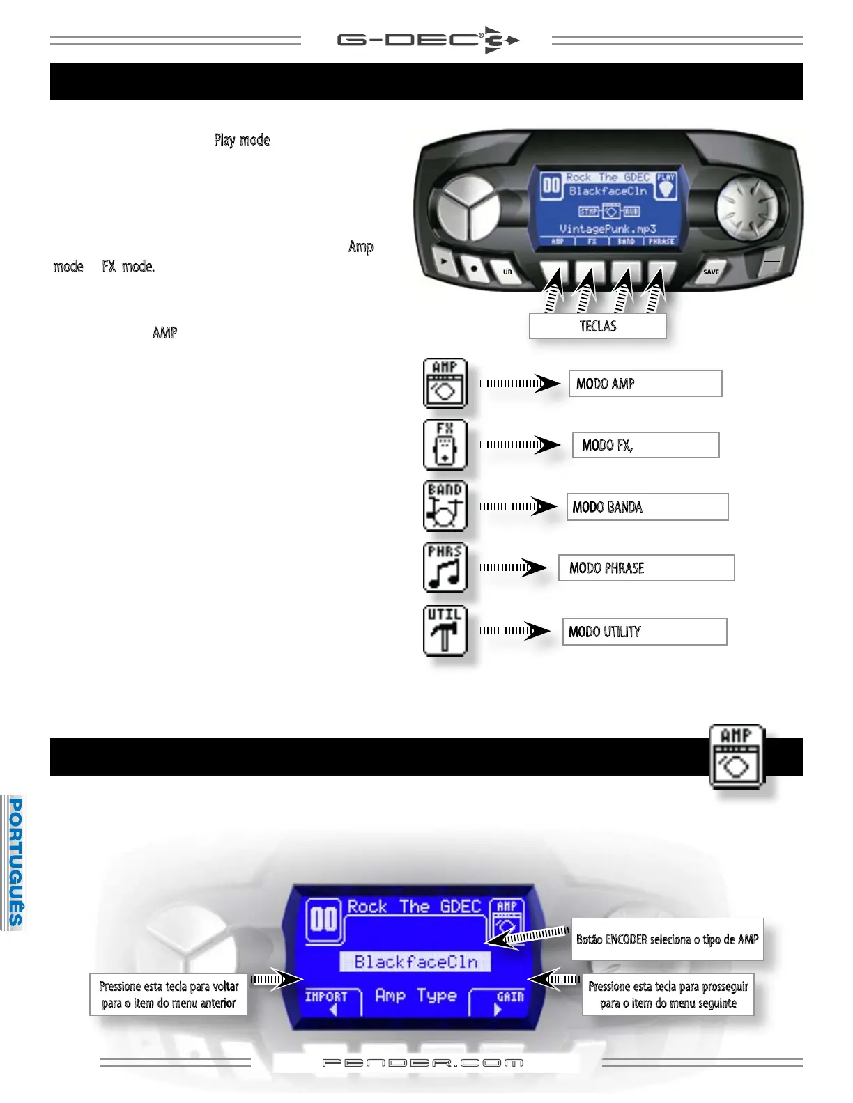 compressão pressionando os botões para acessar os submenus do amp. Os submenus que aparecerem mudarão dependendo do tipo de amplificador