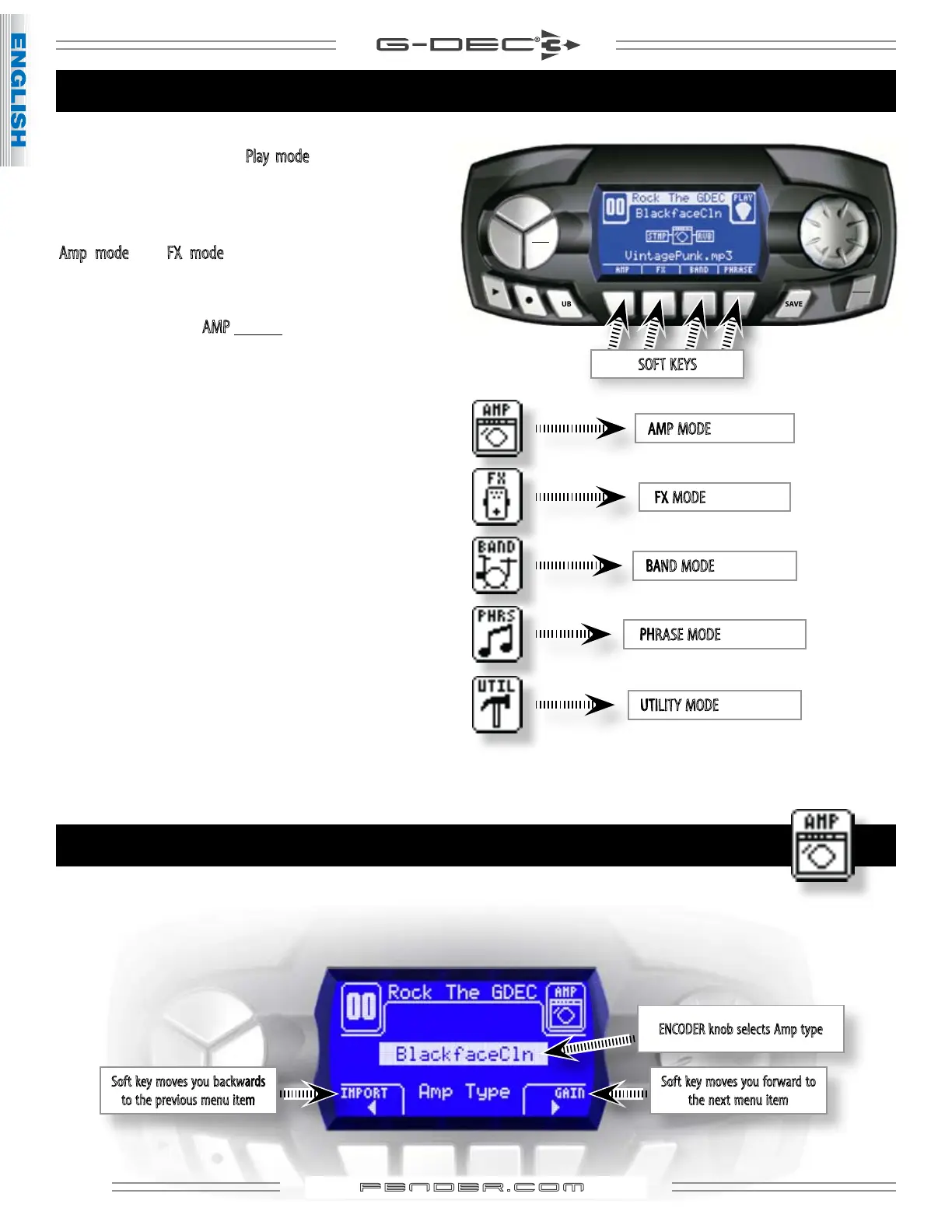 the soft keys to access the amp submenus. The submenus that appear will change depending on the amp type that you have selected.