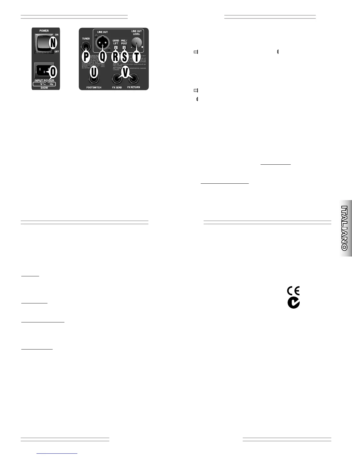 N. INTERRUTTORE POWER - Attiva/disattiva l’amplificatore.