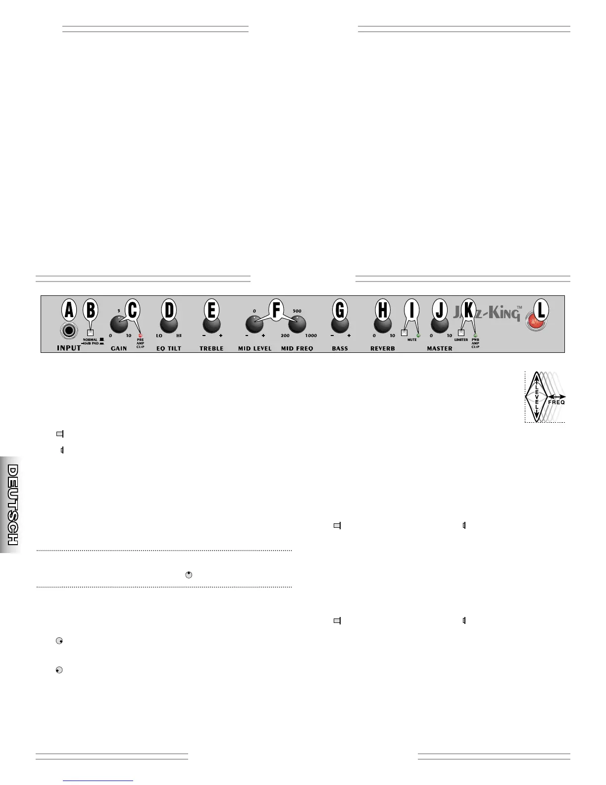 J. MASTER VOLUME - Regelt den Endstufen-Pegel.