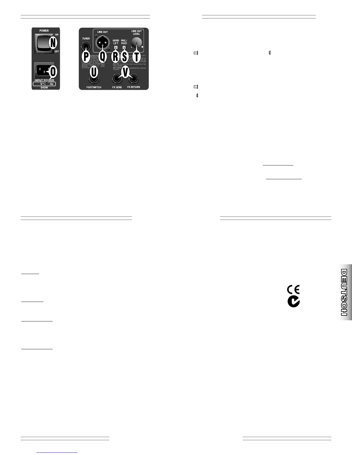 N. POWER-SCHALTER - Schaltet den Amp ein/aus.