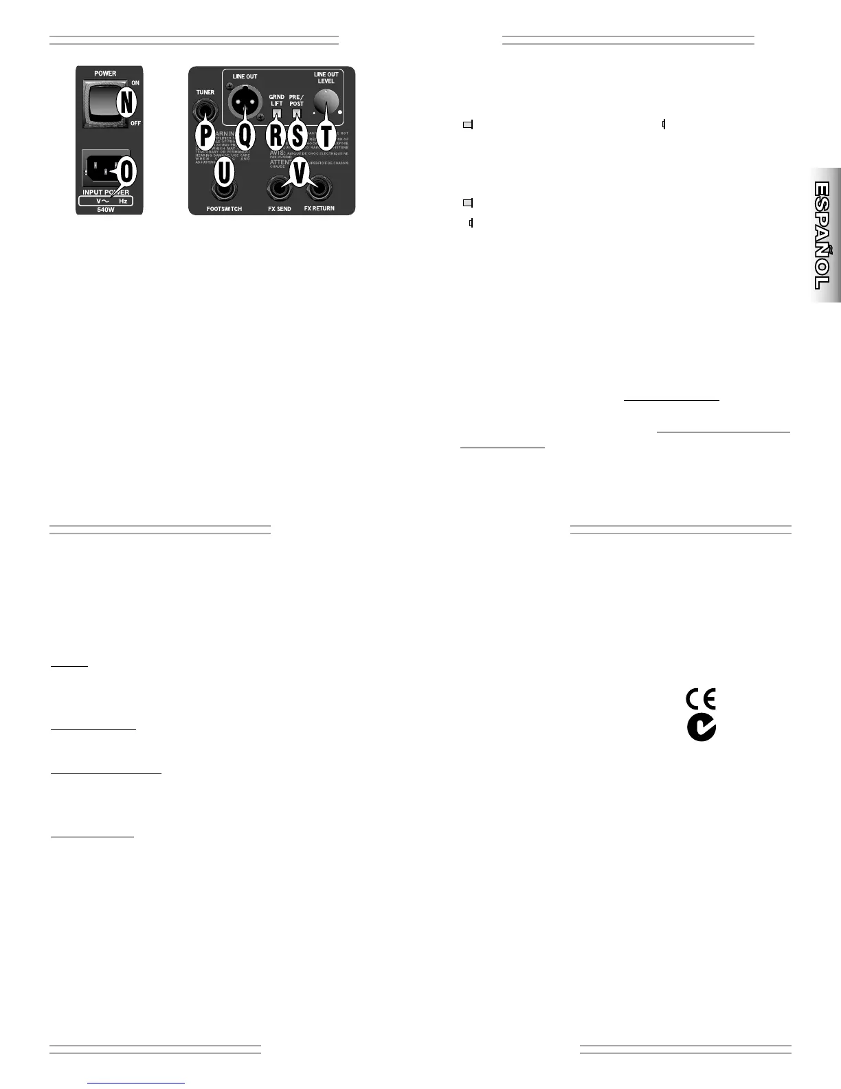 P. TUNER - Conecte aquí el afinador de su guitarra. Utilice