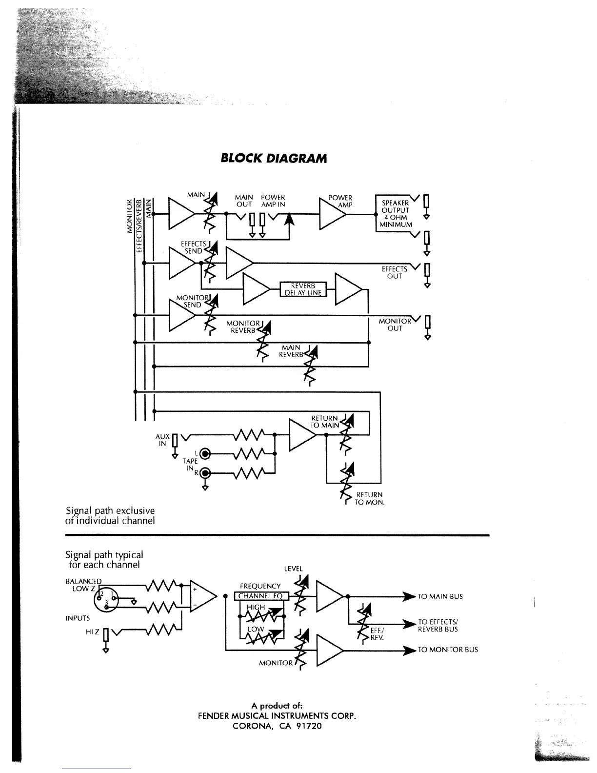 Fender LX-1504 - Block Diagram; Signal Path Exclusive of Individual Channel
