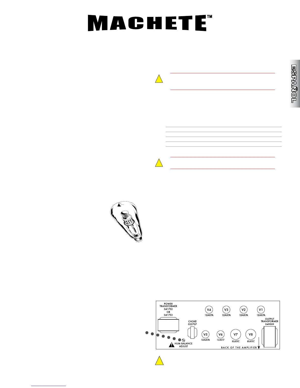 e incluye información de la colocación de las válvulas y del "hum balance adjust".