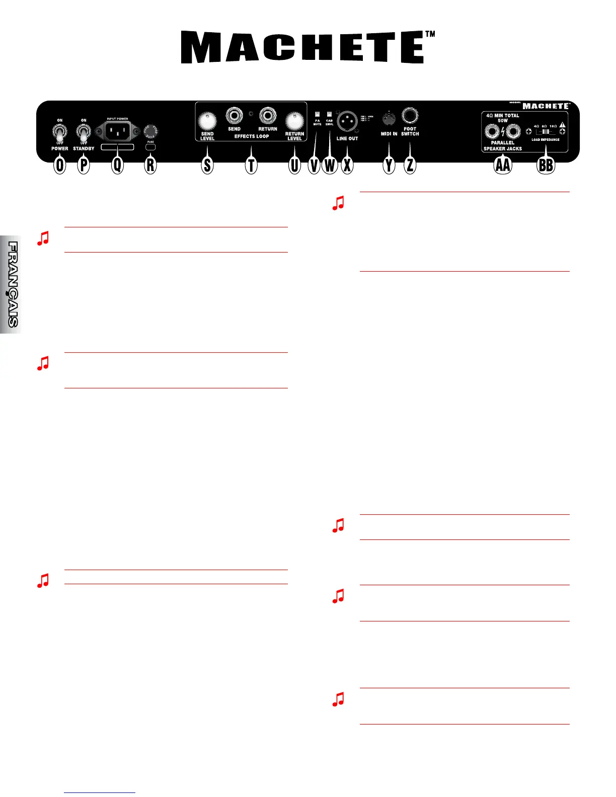 Les options du Machete sont les suivantes : •Canal 1,
