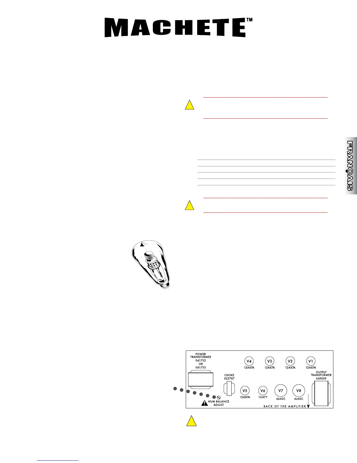 6L6RD, etc. L'installation d'un type différent de lampe peut nécessiter des réglages