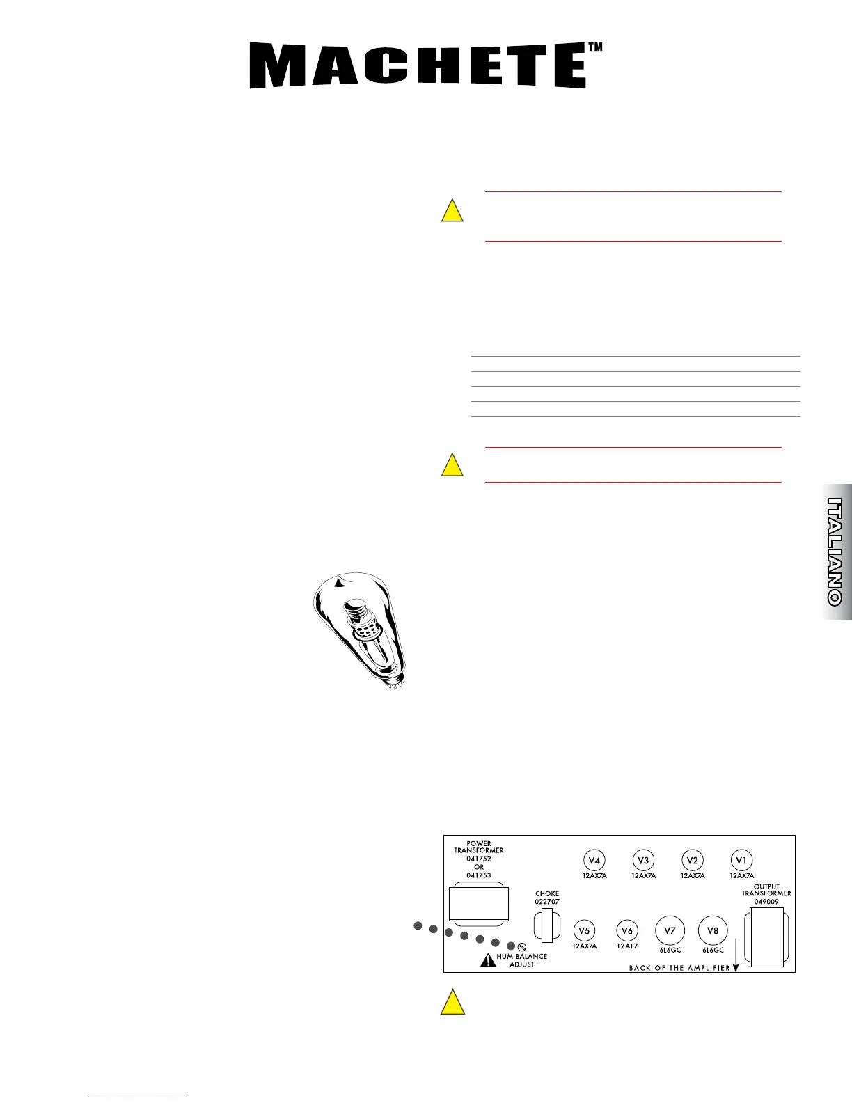 delle valvole, usa questo controllo per minimizzare il ronzio emesso dall’ampli a