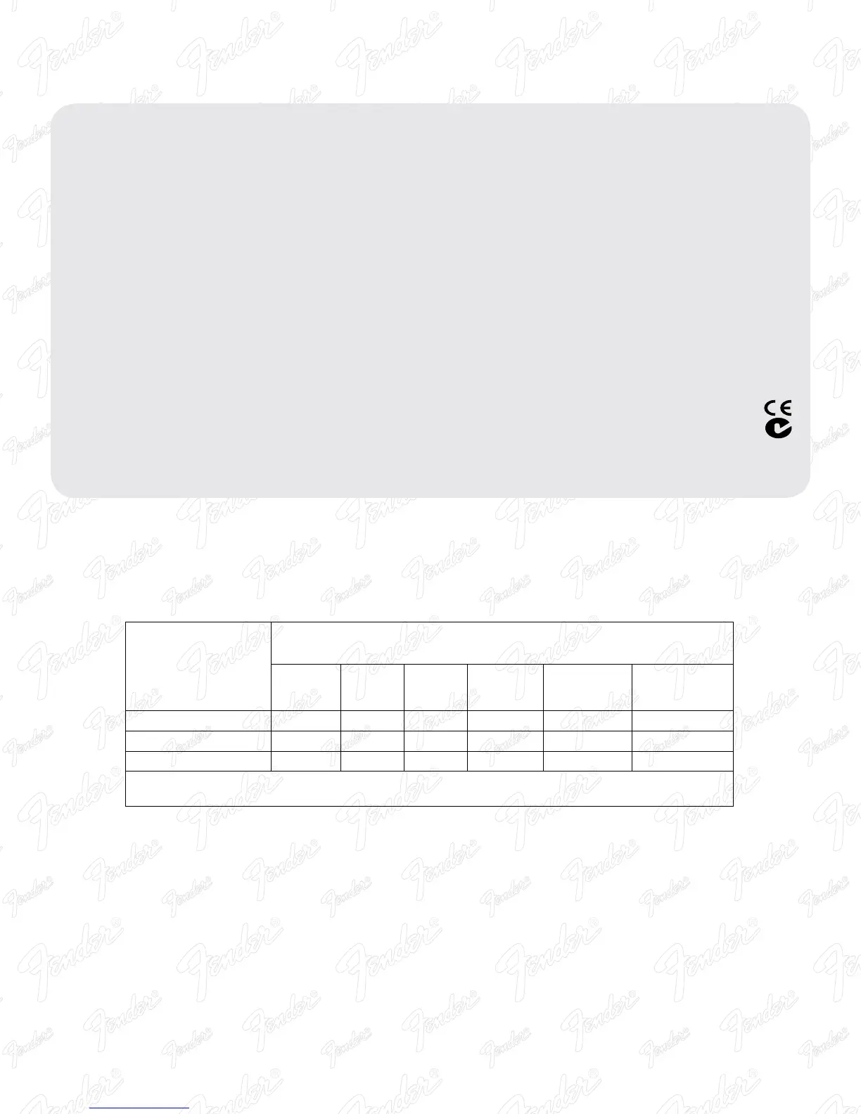 IMPORTADO POR: Instrumentos Musicales Fender S.A. de C.V., Calle Huerta # 132, Col. Carlos Pacheco, C.P. 228890, Ensenada, Baja California, Mexico.
