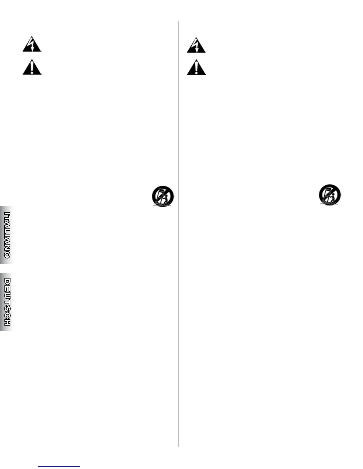 20) ATTENZIONE- Per gli amplificatori di potenza montati all'interno di un rack, mantenere tutti i cavi