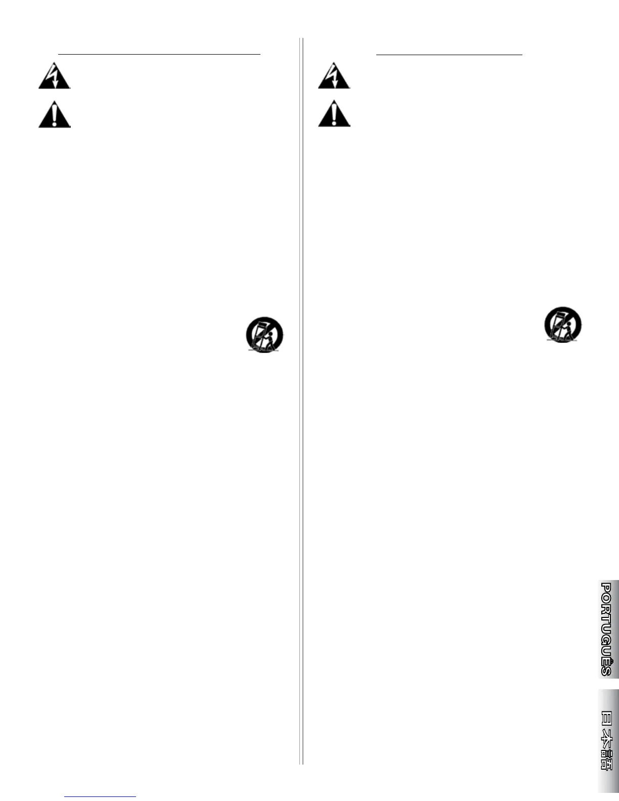 20) CUIDADO – Para amplificadores montados numa estante, mantenha todas as ligações eléctricas