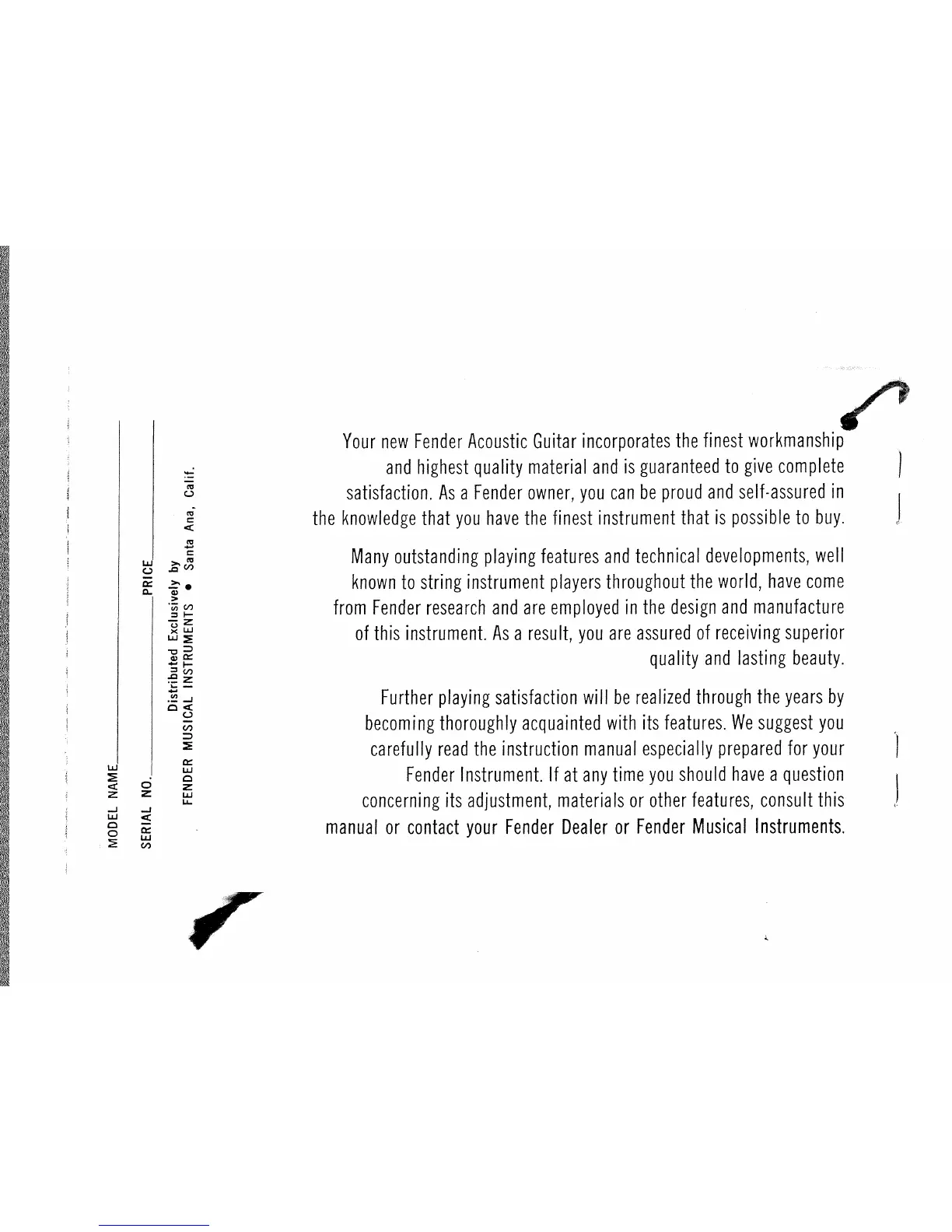 Fender MALIBU - Fender Acoustic Guitar Features and Quality; Product Workmanship and Materials