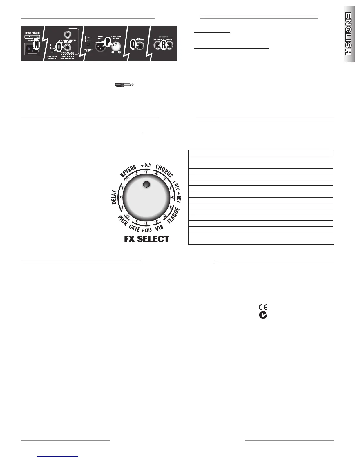 •Effects Loop - Connect SEND to your effect’s input