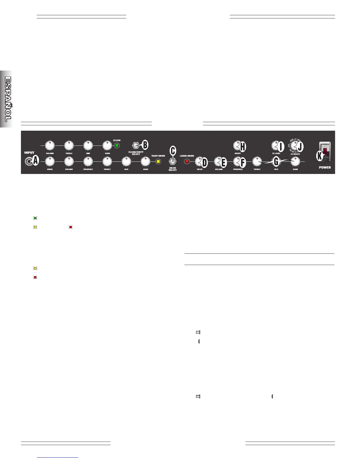 A. INPUT - Conecte aquí su guitarra.
