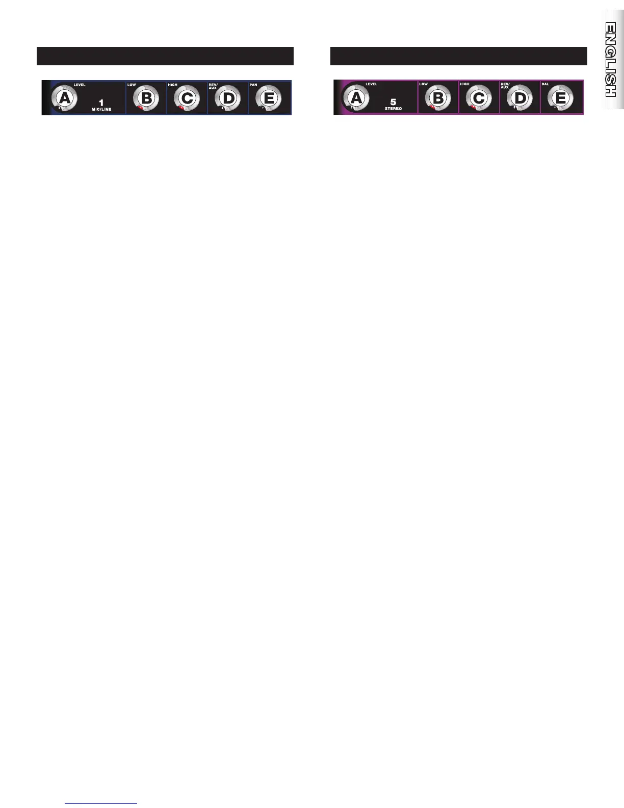 A. LEVEL Adjusts the volume level of the individual channel