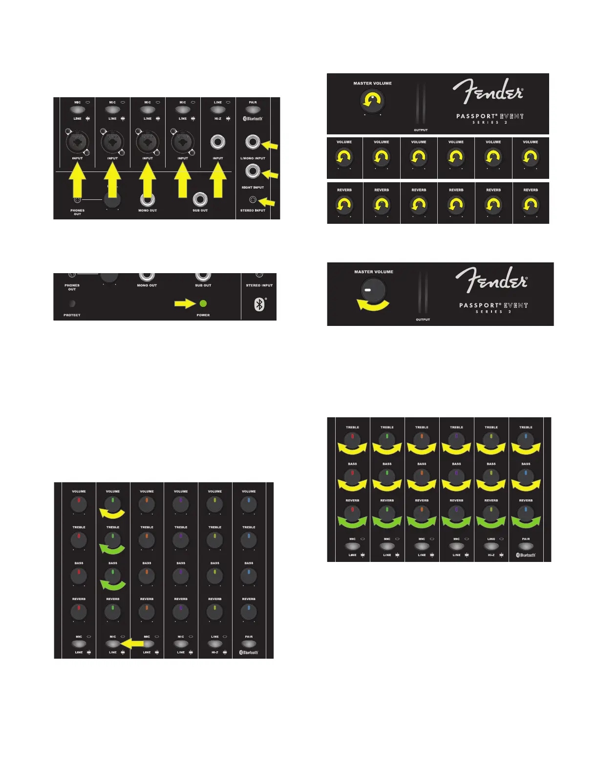 oraz potencjometry VOLUME i REVERB wszystkich kanałów: