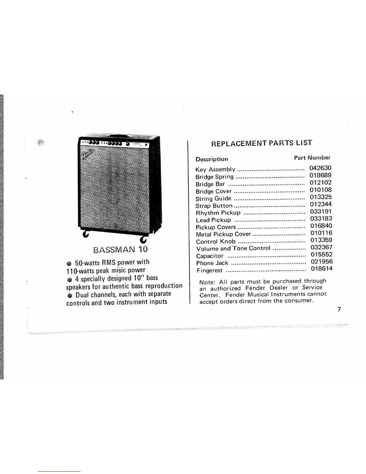 Fender Precision Bass - Bassman 10 and Replacement Parts