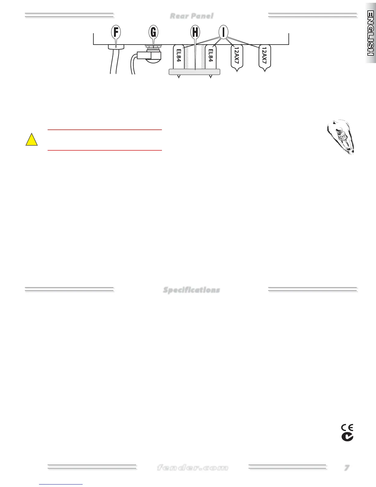 TUBES PRE-AMPLIFIER: 1–Fender Groove Tube 12AX7 (P/N 007-0228-000) 1–Fender Groove Tube 12AX7 (P/N 001-3341-000)