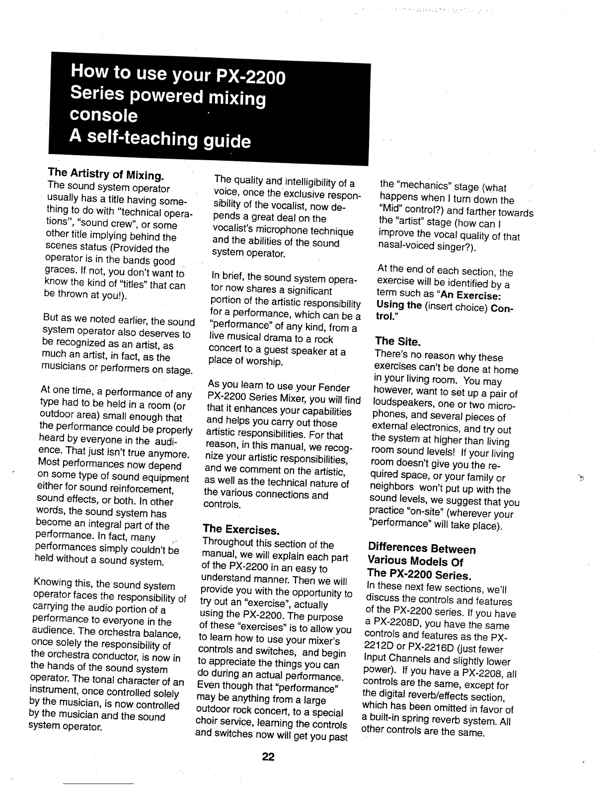 Fender PX-2208 - How to Use; A Self-Teaching Guide; The Site; The Exercises