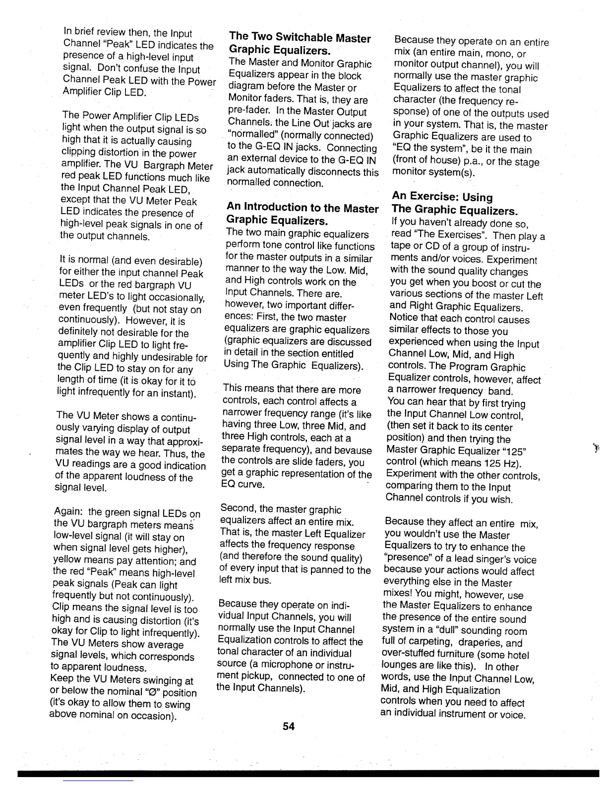Fender PX-2208 - The Two Switchable Master Graphic Equalizers; Using the Graphic Equalizers