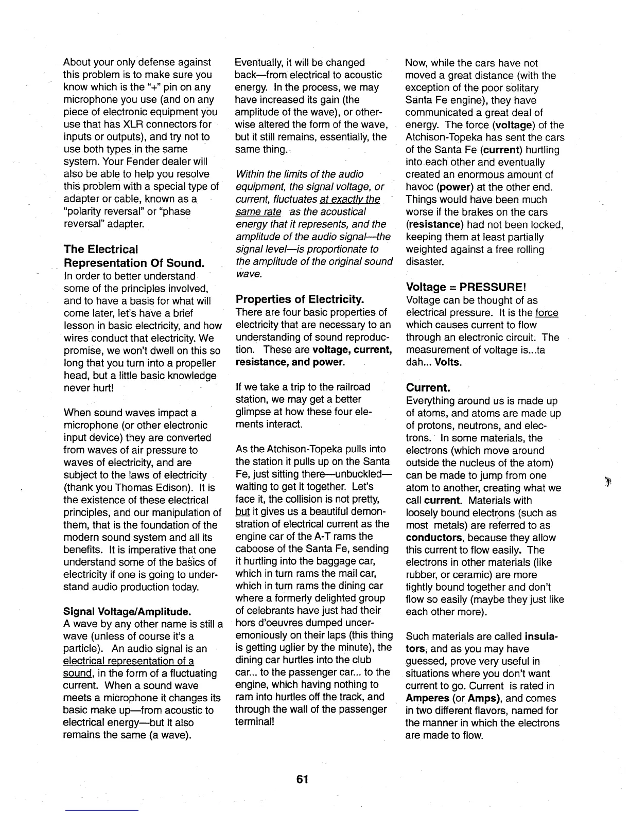 Fender PX-2208 - The Electrical Representation of Sound; Properties of Electricity; Current; Signal Voltage;Amplitude