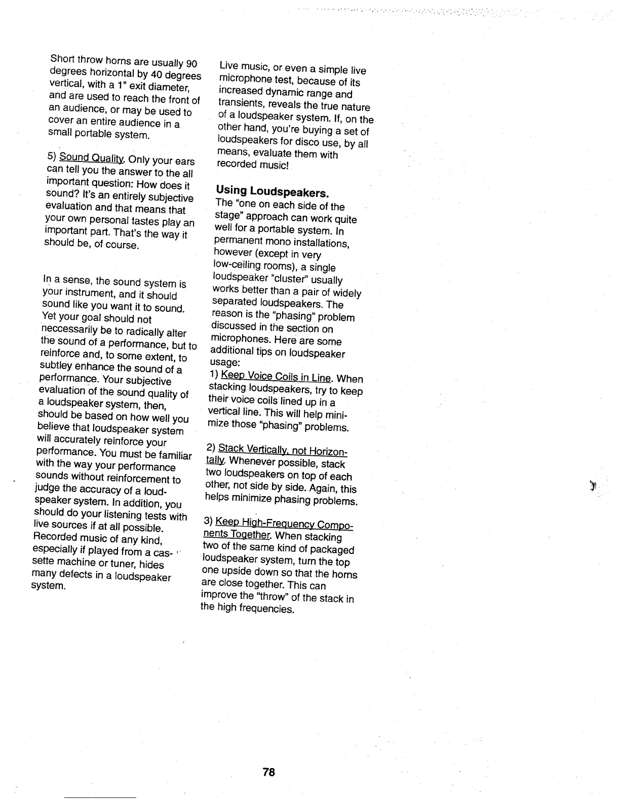 Fender PX-2208 - Using Loudspeakers; Sound Quality