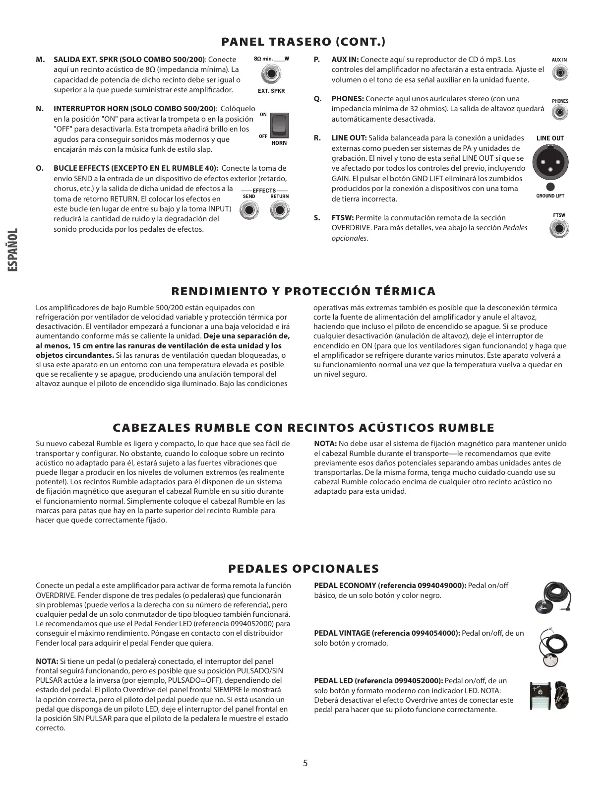 O. BUCLE EFFECTS (EXCEPTO EN EL RUMBLE 40): Conecte la toma de