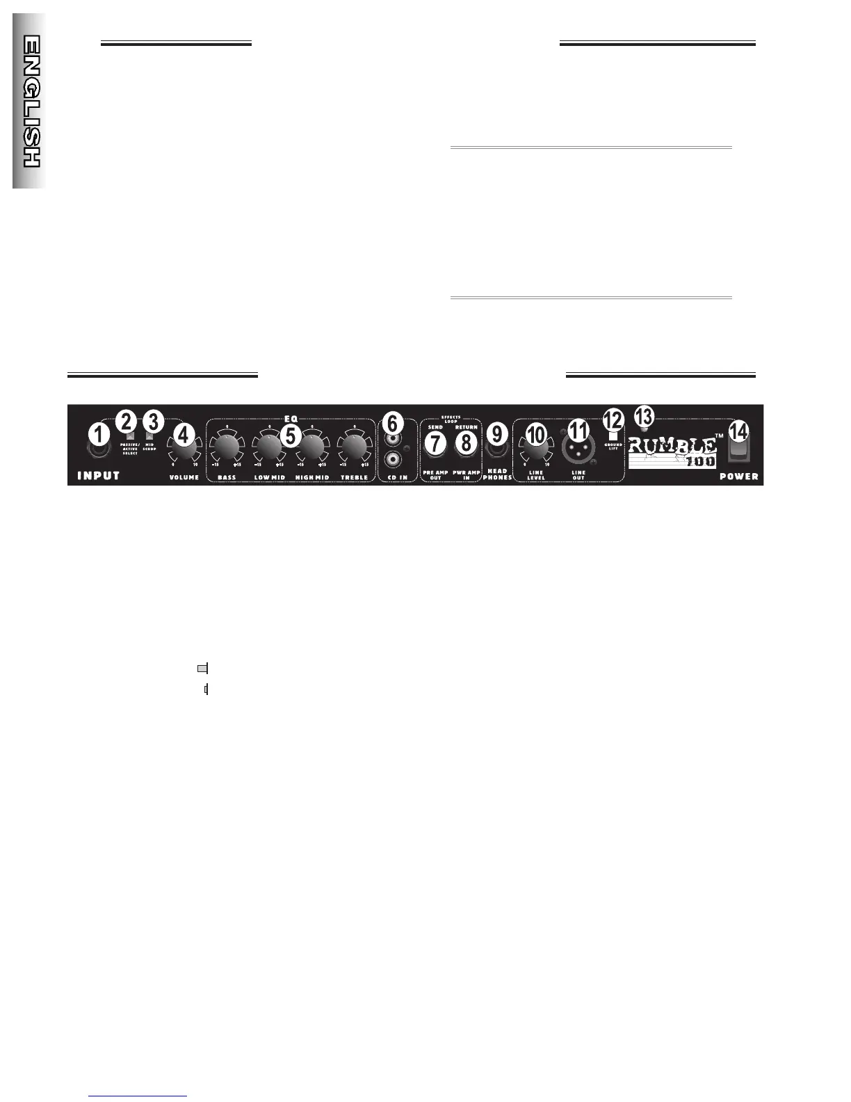 1. INPUT – Plug your bass guitar in here.