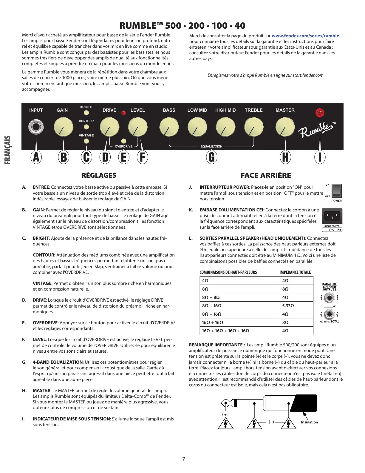 REMARQUE IMPORTANTE: Les ampli Rumble 500/200 sont équipés d'un