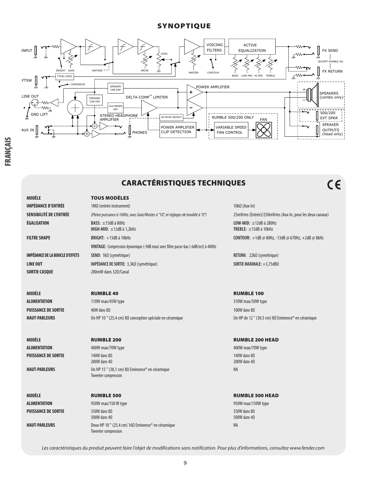 Les caractéristiques du produit peuvent faire l'objet de modifications sans notification. Pour plus d'informations, consultez www.fender.com