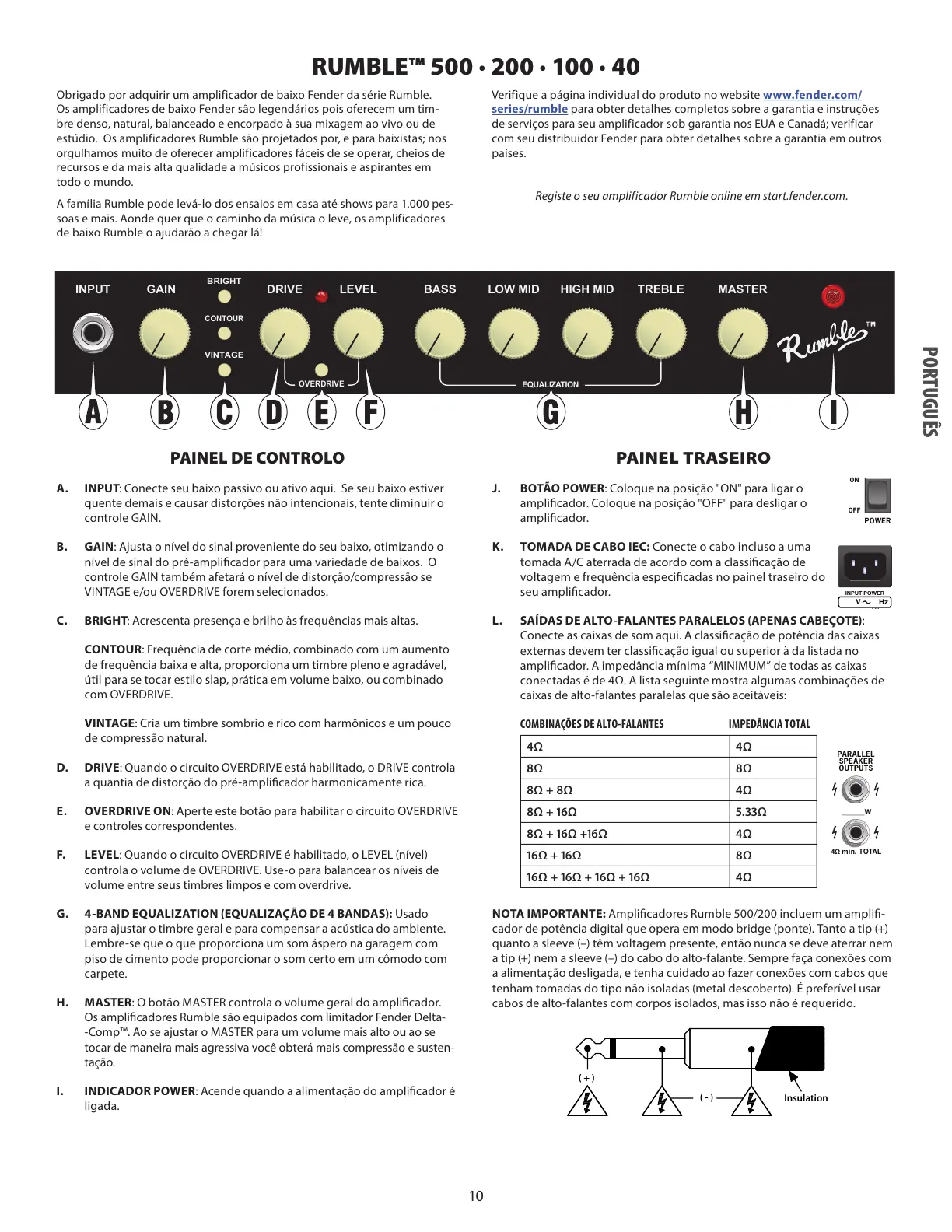 Obrigado por adquirir um amplificador de baixo Fender da série Rumble.