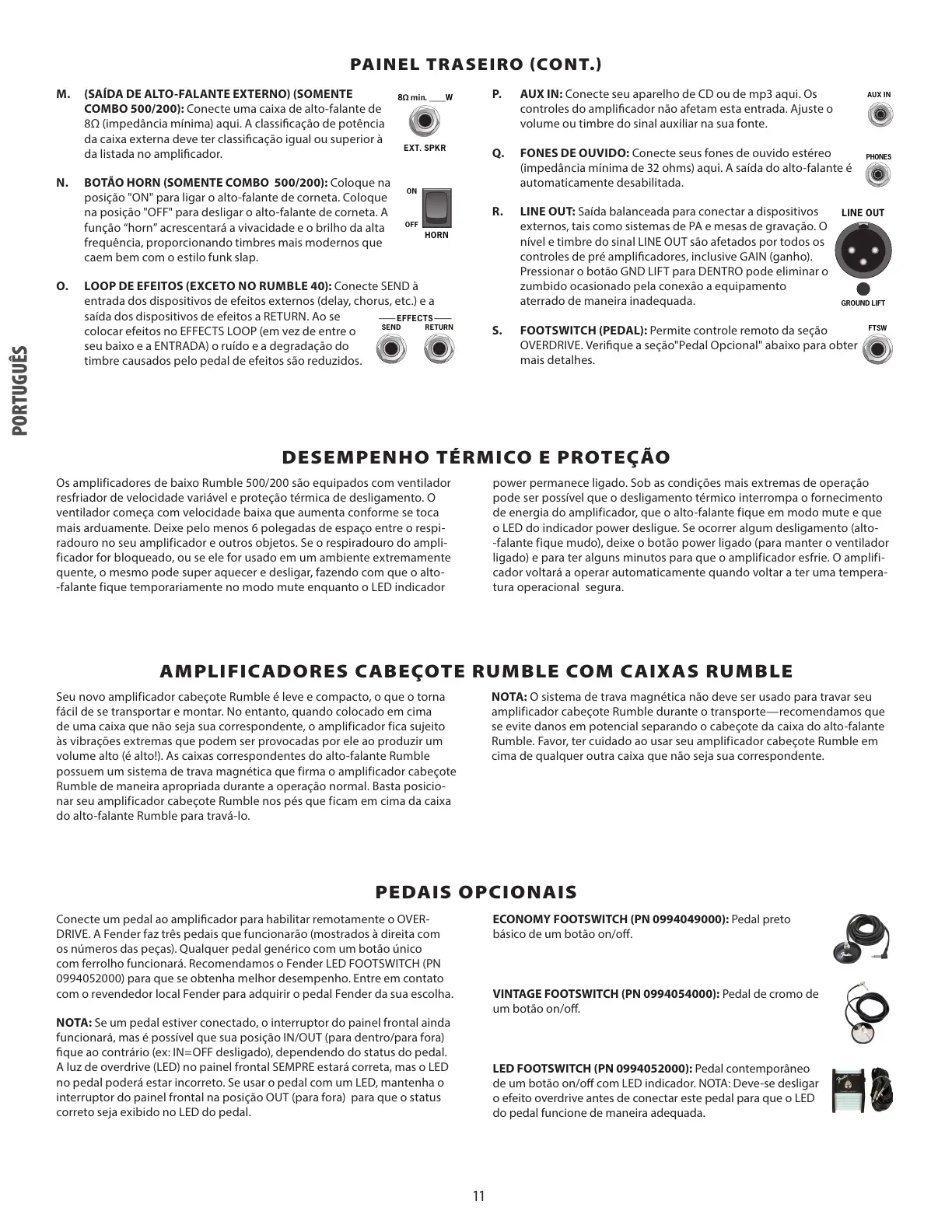 S. FOOTSWITCH (PEDAL): Permite controle remoto da seção