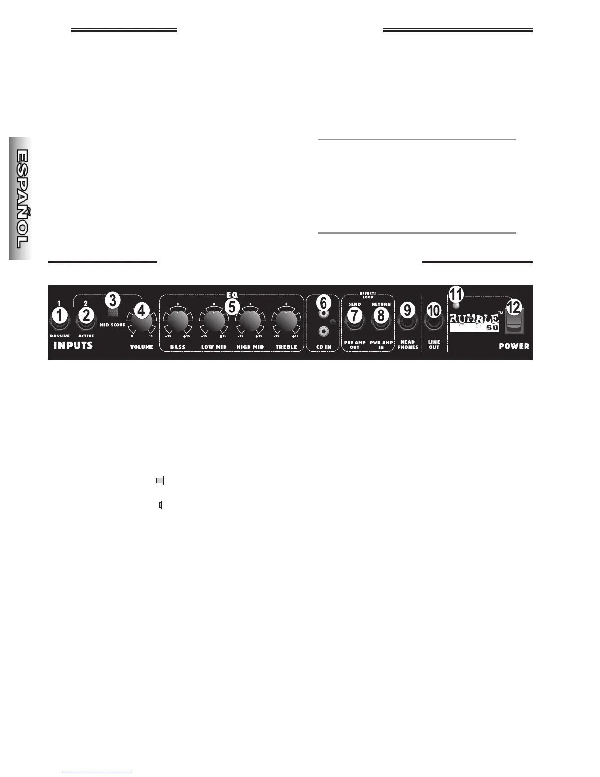 4. VOLUME: Ajusta el volumen del amplifi-