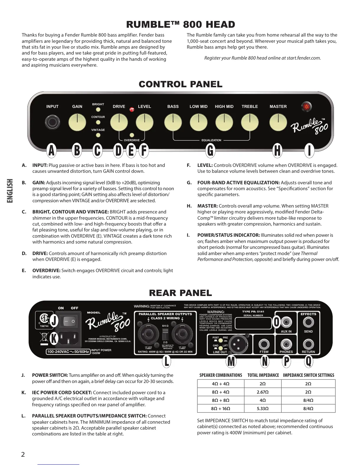 Register your Rumble 800 head online at start.fender.com.