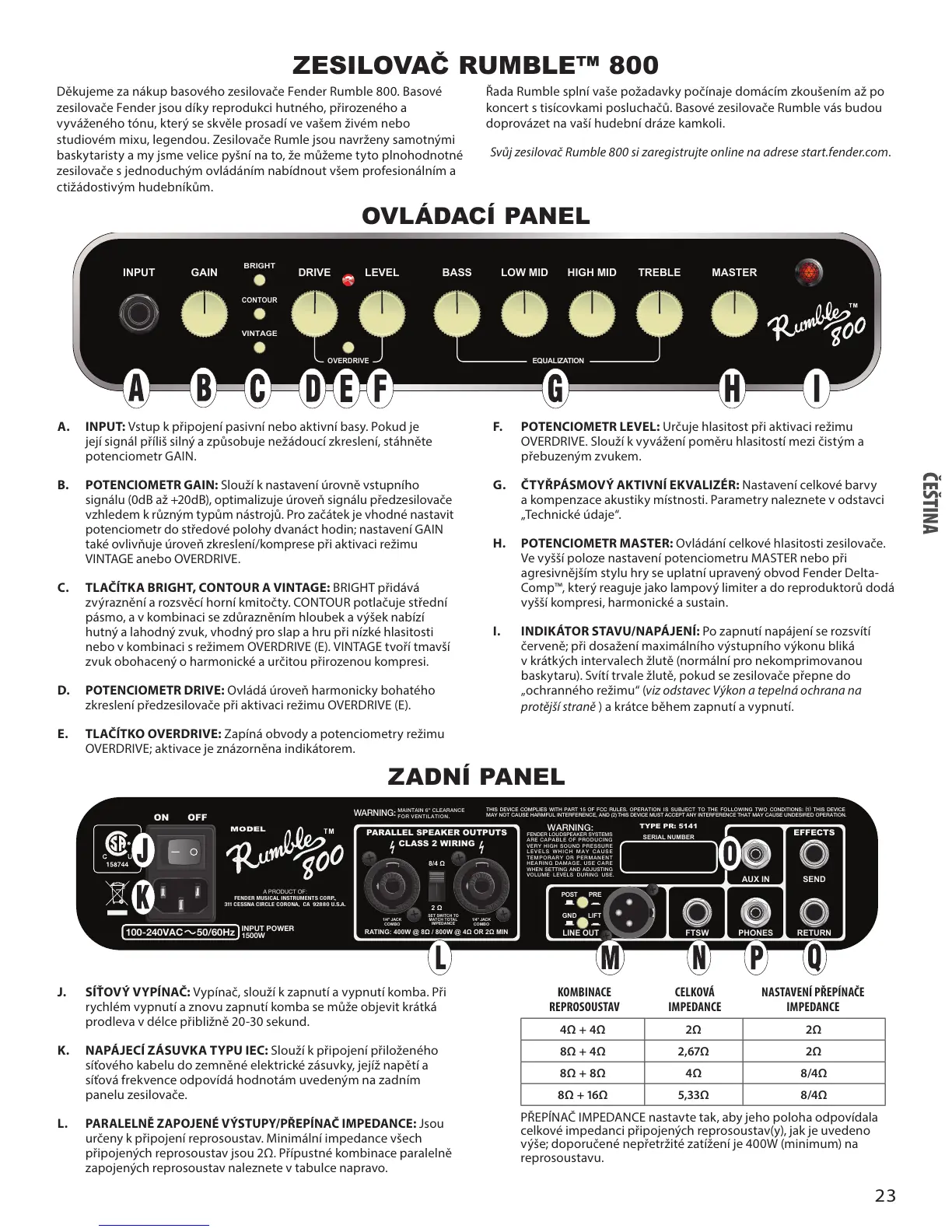 Děkujeme za nákup basového zesilovače Fender Rumble 800. Basové