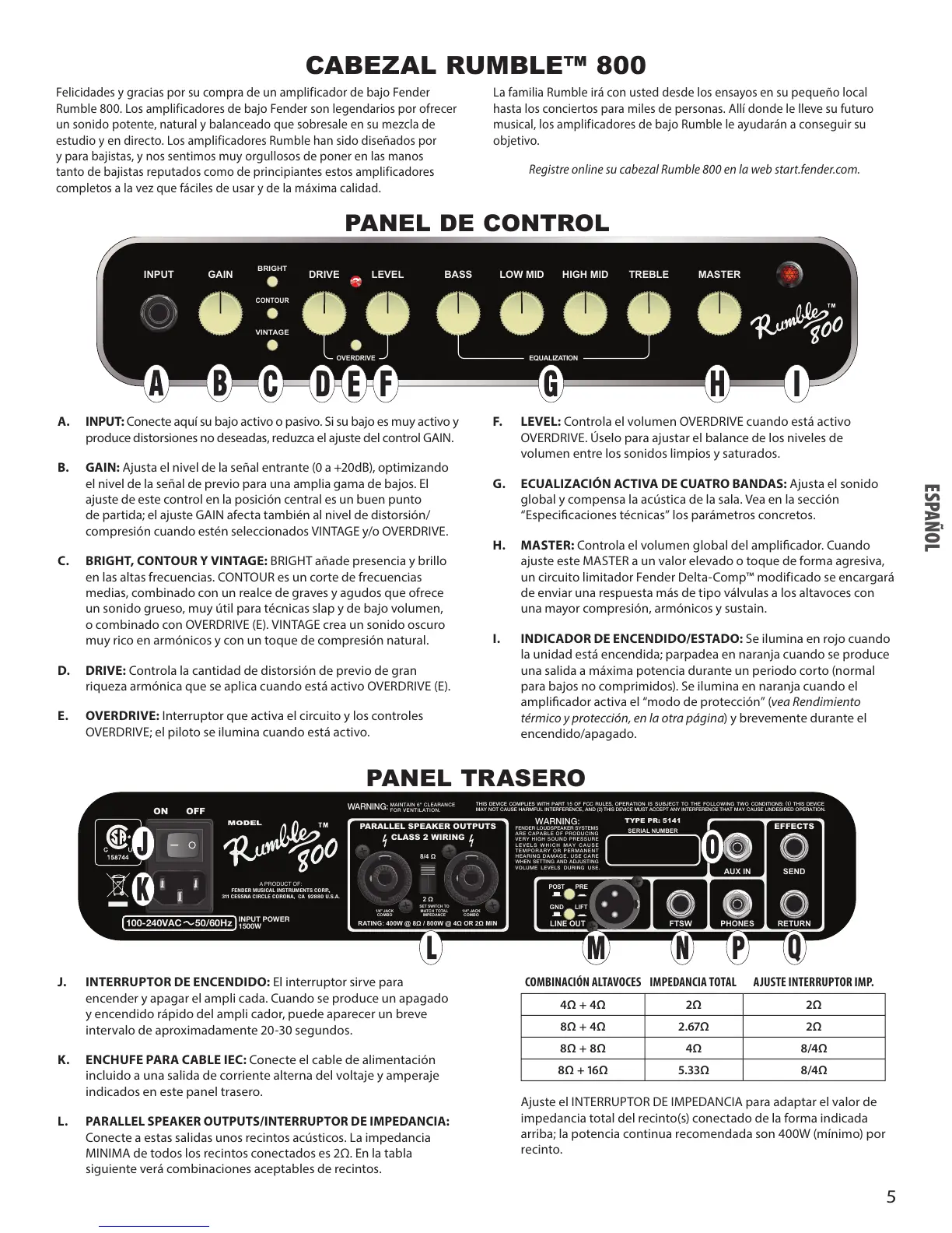 Felicidades y gracias por su compra de un amplificador de bajo Fender