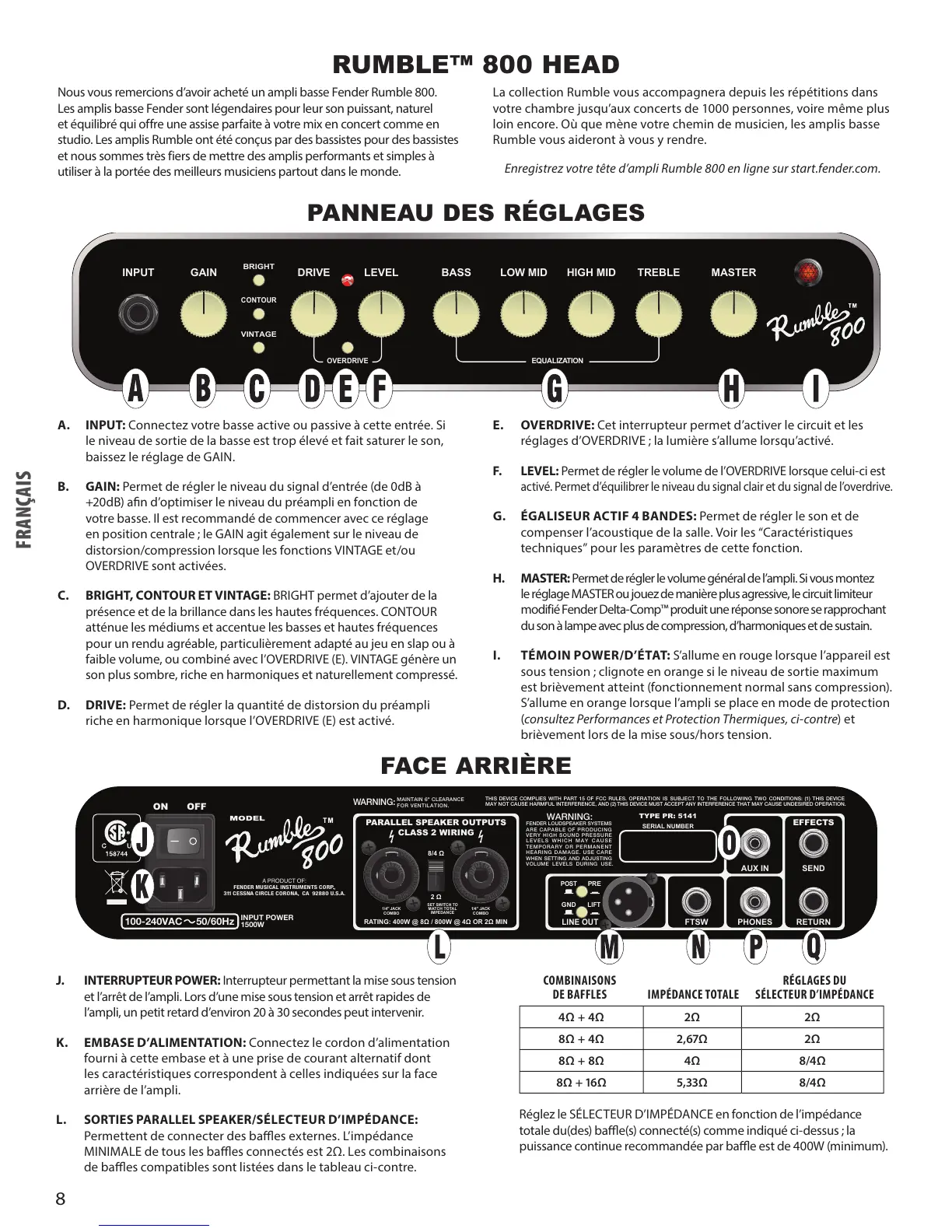 Nous vous remercions d’avoir acheté un ampli basse Fender Rumble 800.