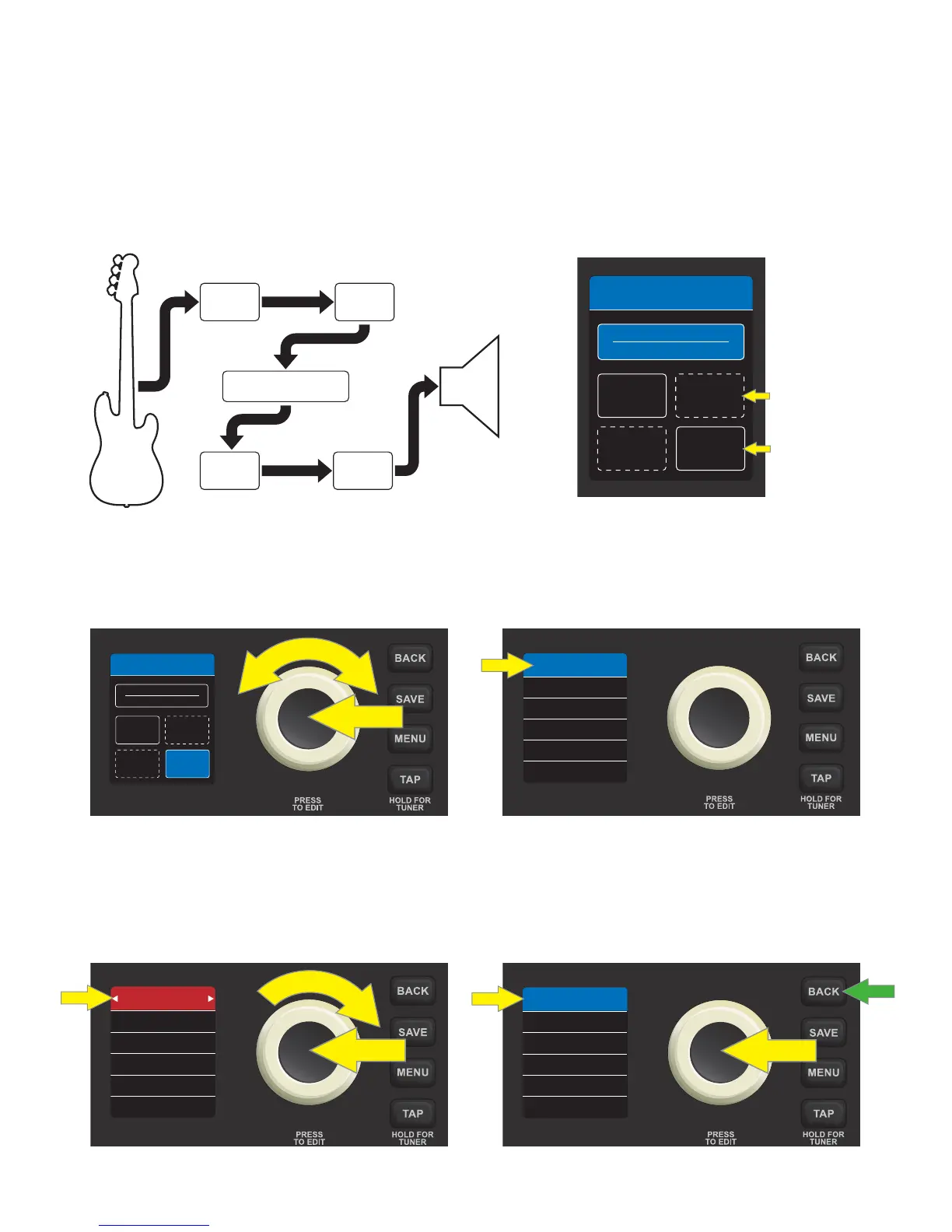 to scroll to one of the four eect category boxes. Press the ENCODER again to see the eect contained in the