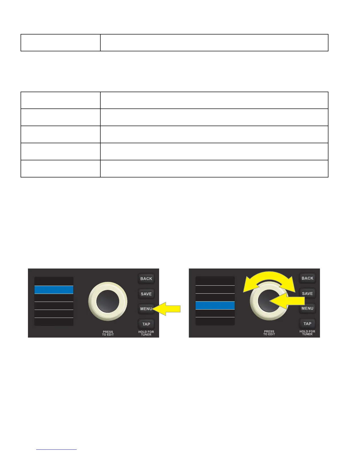 TUNER: Enables use of Rumble LT25’s built-in chromatic tuner (page 15).