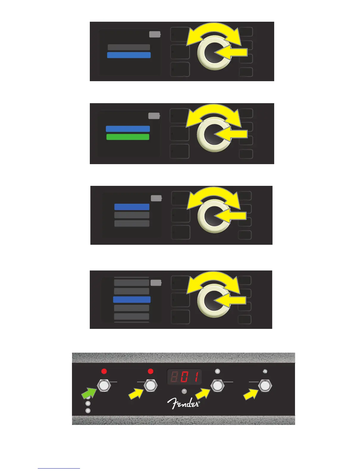Use the ENCODER to scroll to and select a preset for the preset slot chosen in the preceding step.