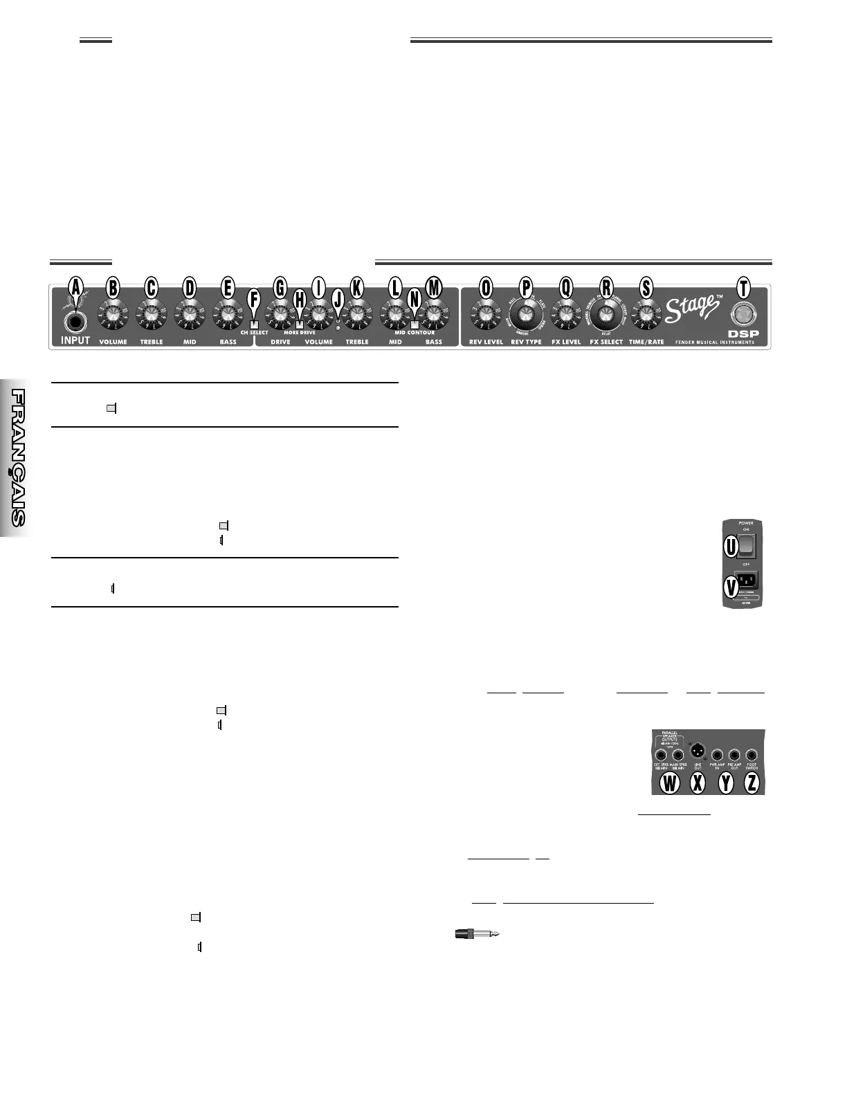 Y. PRE AMP OUT / POWER AMP IN – (1) Boucle d’effets – Raccordez