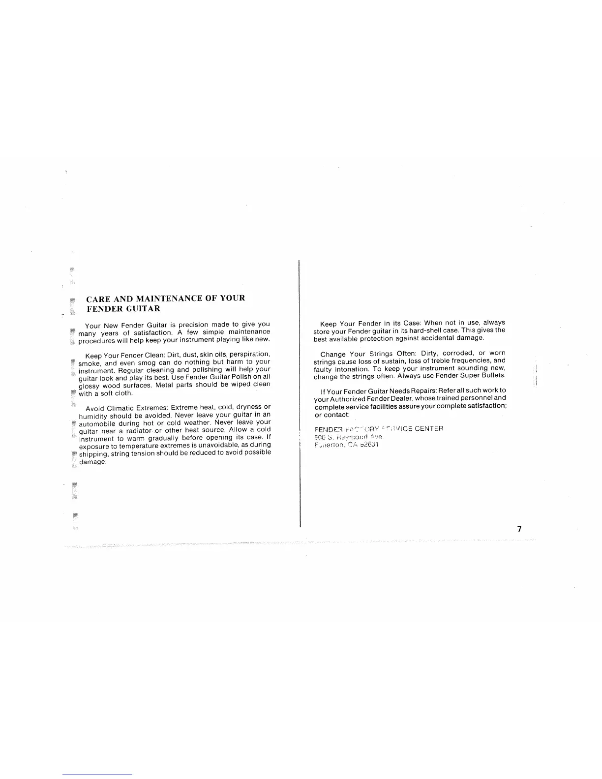 Fender STRAT - Care and Maintenance; Guitar Cleaning; Climate Protection; Guitar Storage