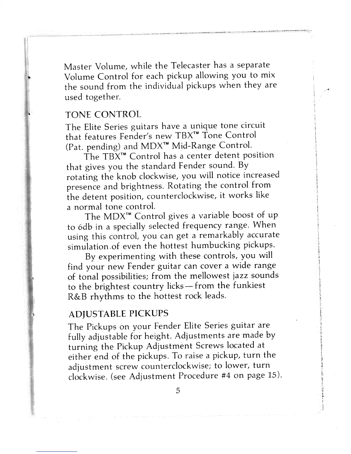 Fender Stratocaster - Adjustable Pickups; Tone Control