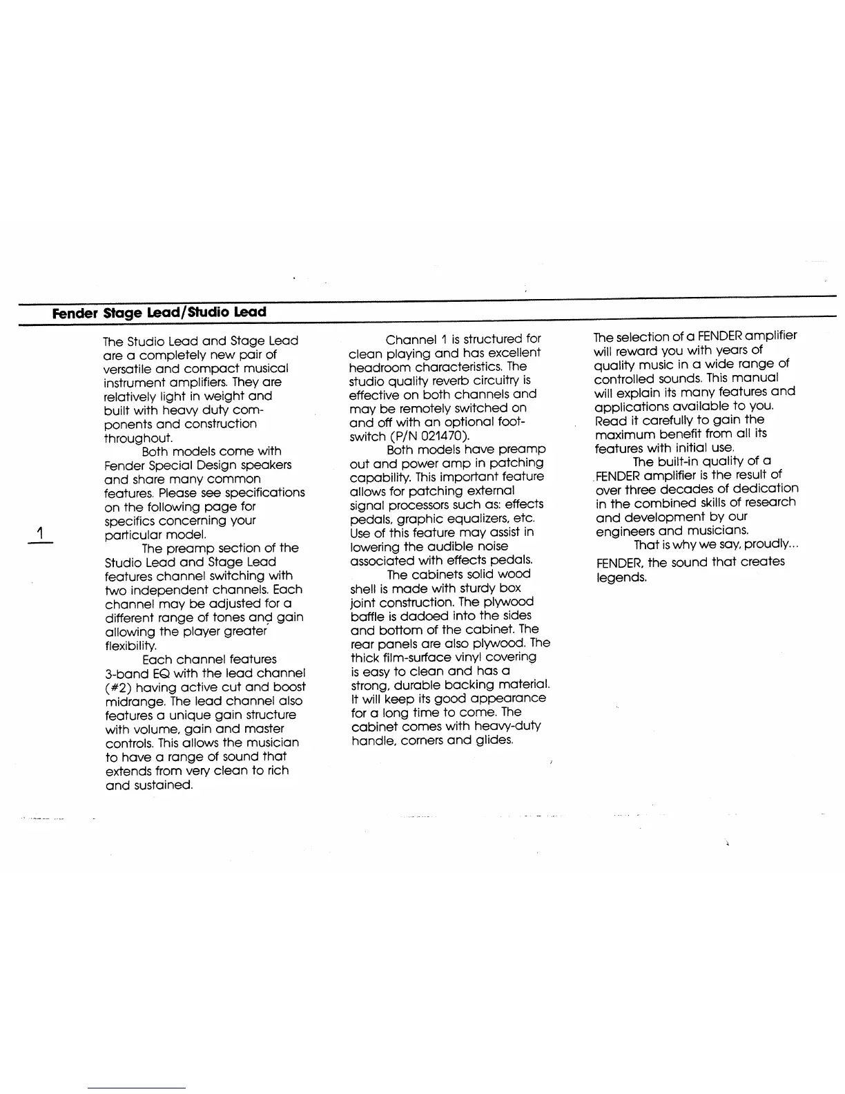 Fender Studio Lead - Fender Stage;Studio Lead Amplifier Overview; Channel Switching and EQ System