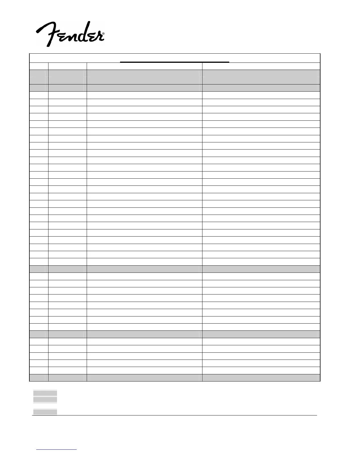 shaded Unique Fender® part. Order directly from the FMIC Parts Department.