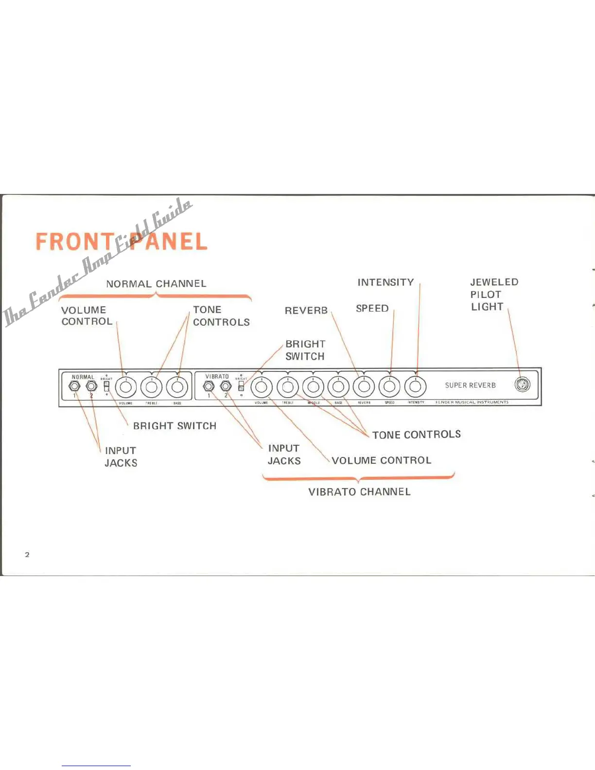 Fender Super Reverb - Front Panel Layout; Normal Channel Designation; Vibrato Channel Designation