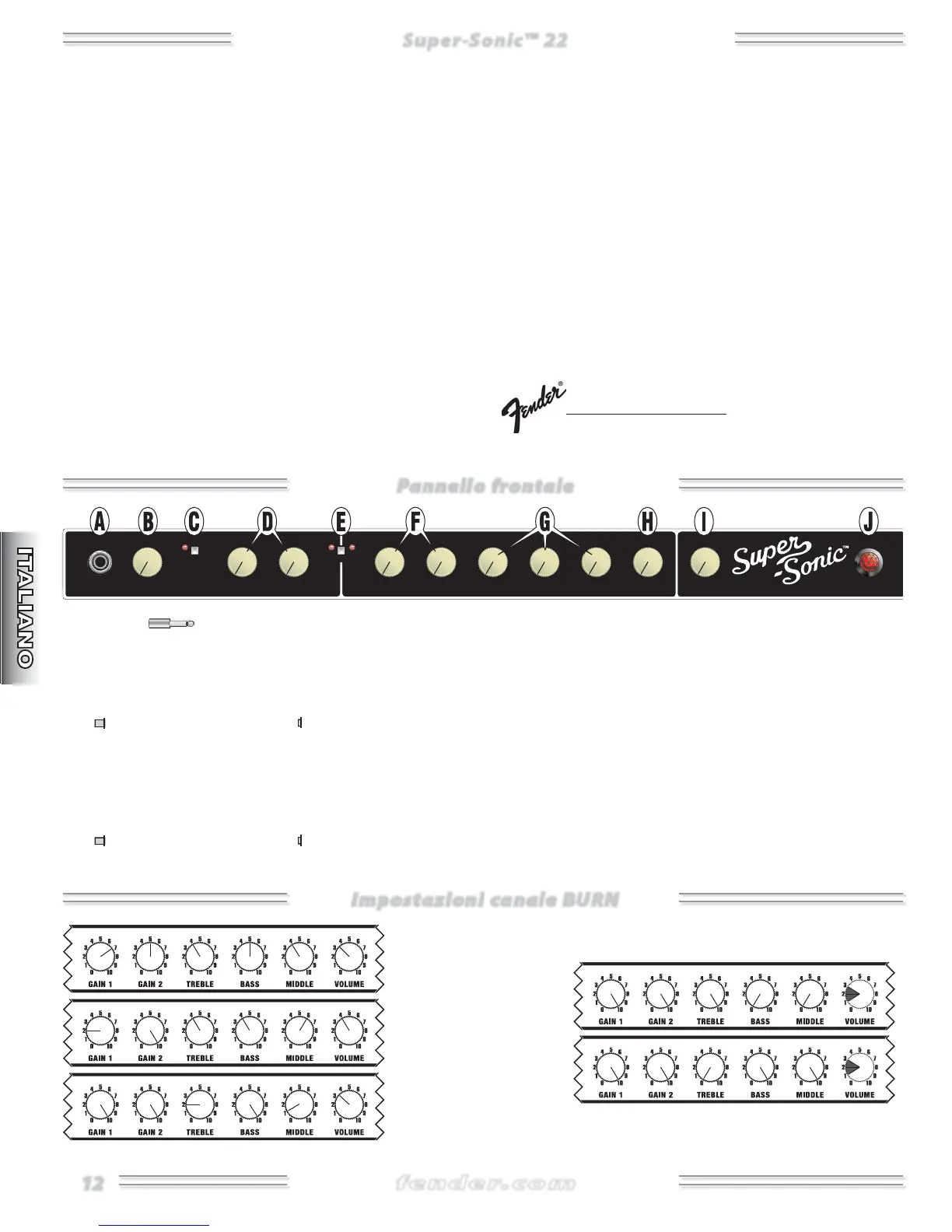 G. TREBLE / BASS / MIDDLE — Controlli che regolano il carattere