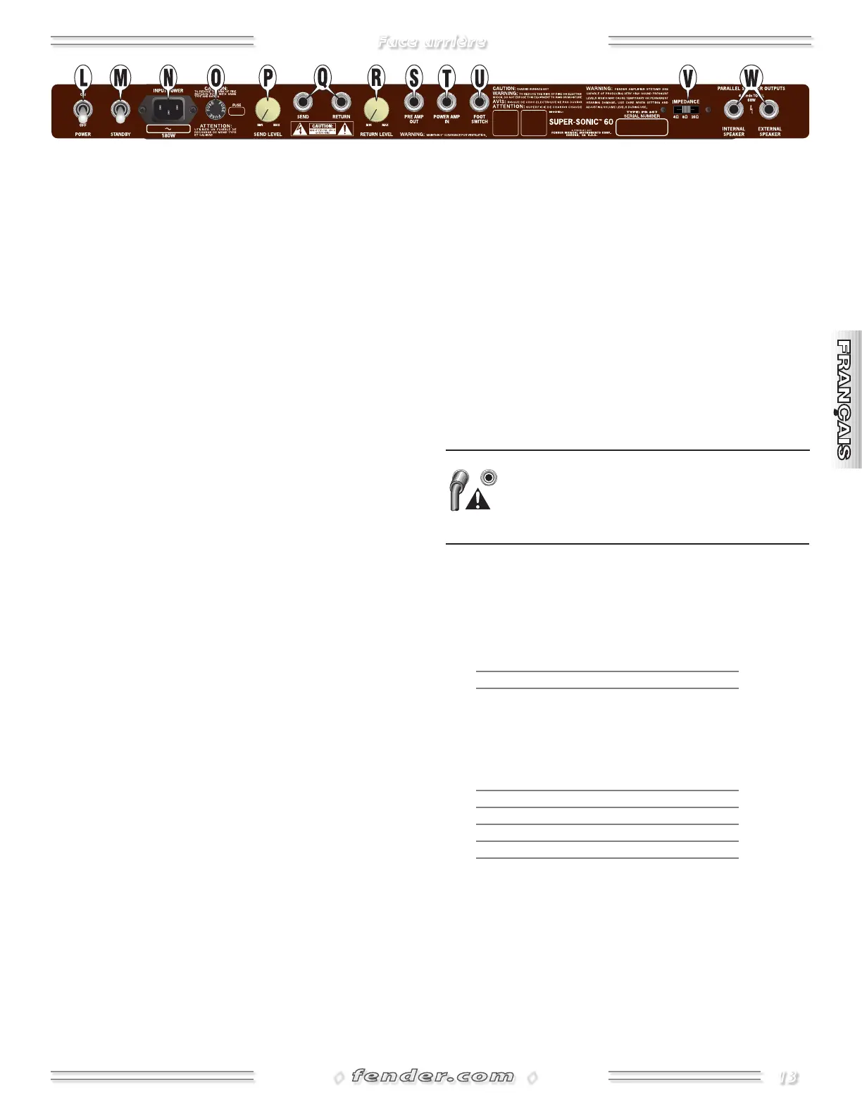 Q. SEND/RETURN Connecteurs de boucle d'effets. Connectez