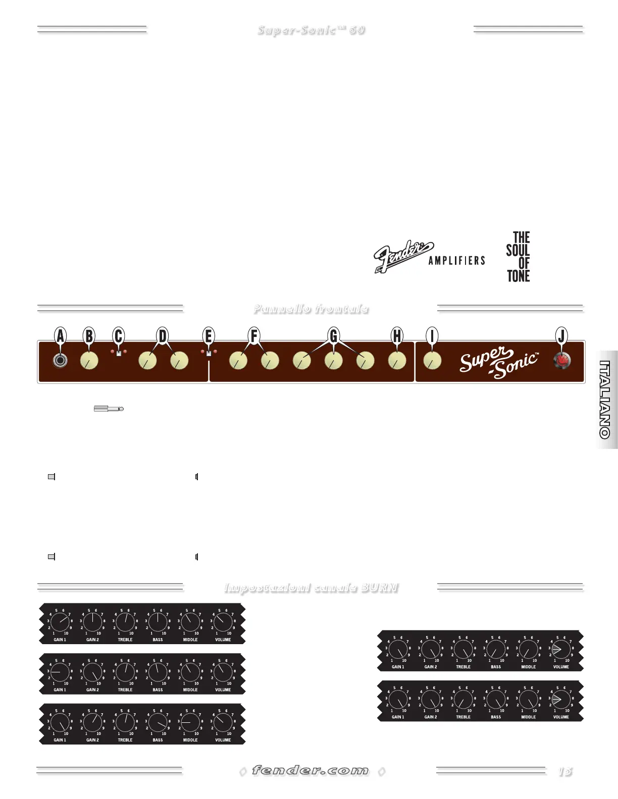 G. TREBLE / BASS / MIDDLE— Controlli che regolano il carattere