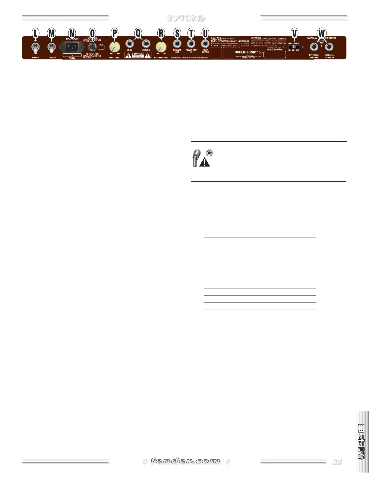 て い ま す )。 注 記:このジャックを 2 台目のアンプの POWER AMP IN