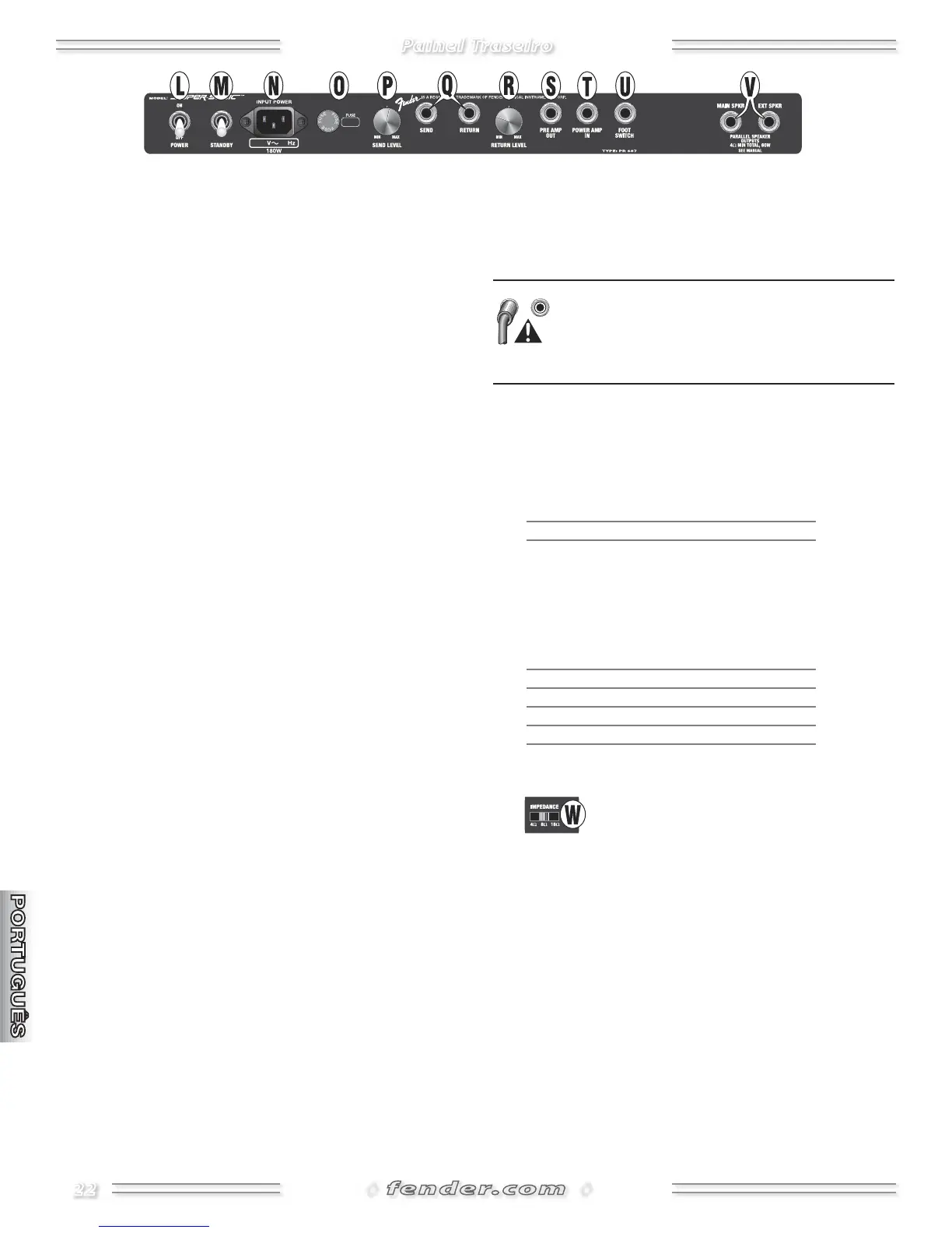 alto-falante ou as configurações de impedância.